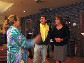 ![]() The Larkins talk with former owner Marcia Plumb. |
