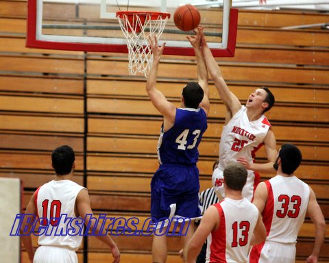 Playing without regular starter Tyrell Thomas, who sat out the first half as a result of a coaches' decision, McCormack paced the Greylock offense with nine points and five boards in the first half. Wahconah center Jordan Fiske couldn't keep himself out of foul trouble, so that allowed McCormack and center Tyler Picard more room to operate down low. The two Mounties played a big part in the victory, each scoring 12 points and combining for 17 rebounds.