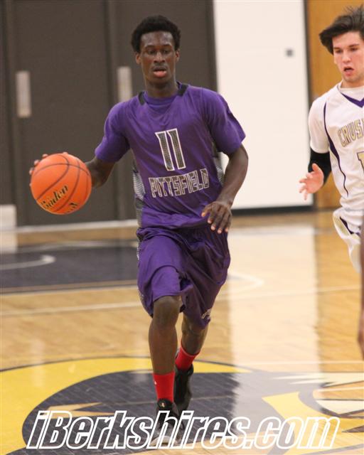 Amancho Adopo stole the ball in the backcourt, raced the other way for an uncontested slam dunk and brought the Pittsfield crowd to its feet on Thursday night at Hoosac Valley High School. But Adopo's biggest smile of the night came at game's end, when the team's statistician told him how many rebounds he recorded in a 66-44 win over the Hurricanes.