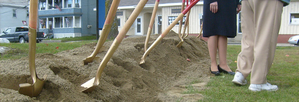About a dozen officials pitched in with the traditional golden shovels to toss some dirt piled up for the occasion.