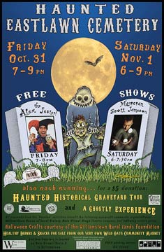 The Haunted Eastlawn Cemetery, located on Route 2, will take place Friday, Oct. 31, from 7 to 9 p.m. and Saturday, Nov. 1, from 6 to 9 p.m. Entrance to the haunted historical tour is $5 and will benefit the Williamstown House of Local History, and Main Street Stage theater company and Inkberry of North Adams.