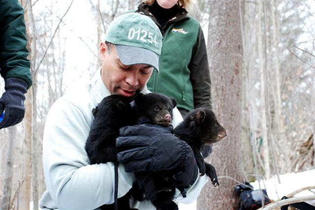 Oh, they're cute when they're little, but you don't want full-grown bears dropping by your back yard for dinner. Above, Gov. Deval Patrick on the annual bear count in Hadley. |