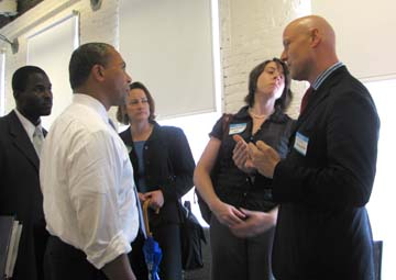 Representatives from some 120 organizations were invited to participate in the roundtable discussion with Gov. Deval Patrick, who toured two galleries and a local dot-com, Waterfront Media, in the morning.