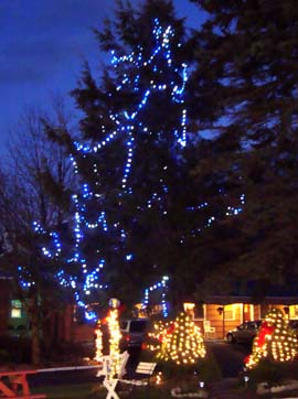 All the children seemed especially impressed with the 40-foot spruce tree resplendent with blue lights and a red tree topper. They were not aware that the original plan had been to light the 80-footer next to it, but B&B Tree Service of Adams did not have a bucket truck that could reach that high.