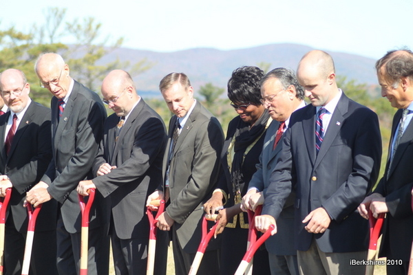 The ceremony was held at the end of the tarmac, where Phase I of the controversial airport expansion will begin thanks to the approval of the Massachusetts Department of Transportation. In addition to 1,000 feet of added runway space, airport improvement plans also include four new aircraft hangars as well as a new (or extensively refurbished) terminal and an additional roadway that connects to the existing entrance to create circular traffic flow. Reid said the improvements promise to bring safety and opportunity to Berkshire County.