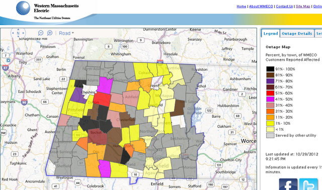 9:00 p.m.: North Adams update: Power is currently out on all or portions of the following streets: Reservoir Road, Rock Street, Pebble Street, Furnace Street and Francis Street.