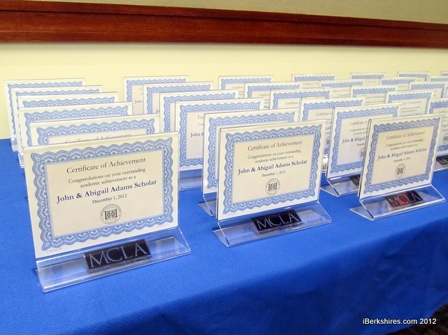 The students and their parents were guests at the annual reception given by MCLA to recognize the seniors academic achievements in earning John and Abigail Adams Scholarships.