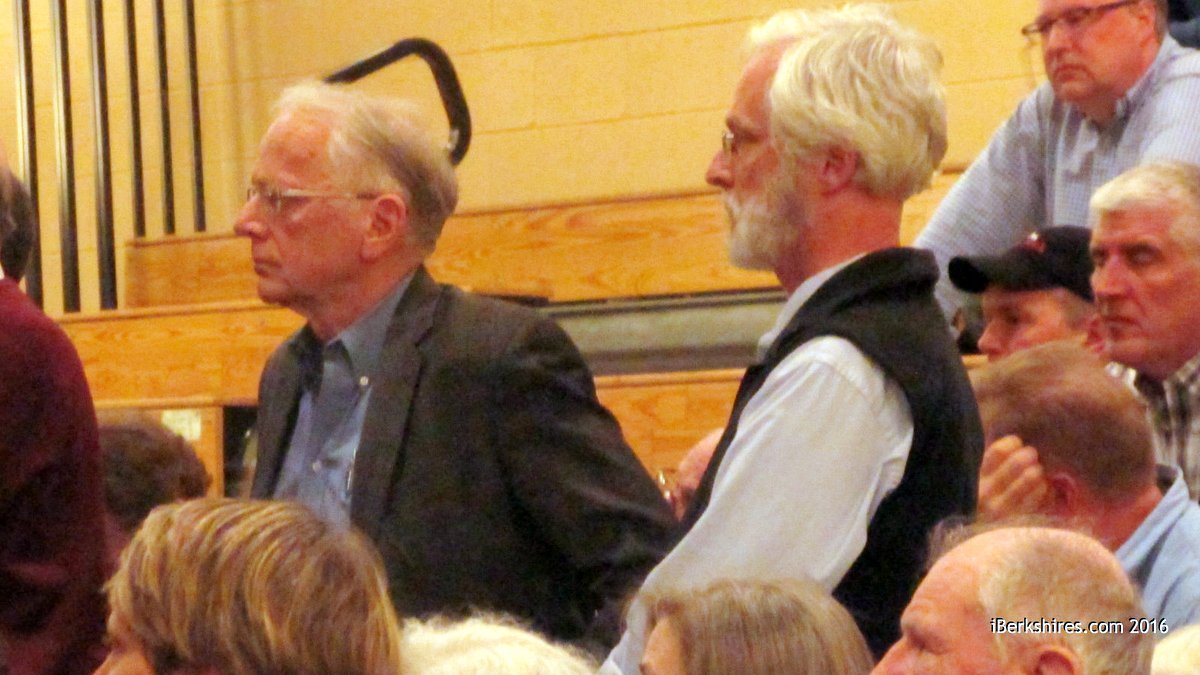 South Williamstown residents Sherwood Guernsey and Andrew Hogeland await their turns to speak at Tuesday's hearing.