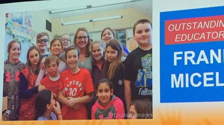 Fifth-grade teacher Frani Miceli was nominated for the award by Steve and Donna Narey, whose son Cole has Down syndrome and has been with Miceli for both fourth and fifth grades. Miceli joined other award recipients as well as Principal Joelle Brookner and paraprofessional Kelly Galusha at a ceremony in Worcester on March 25.