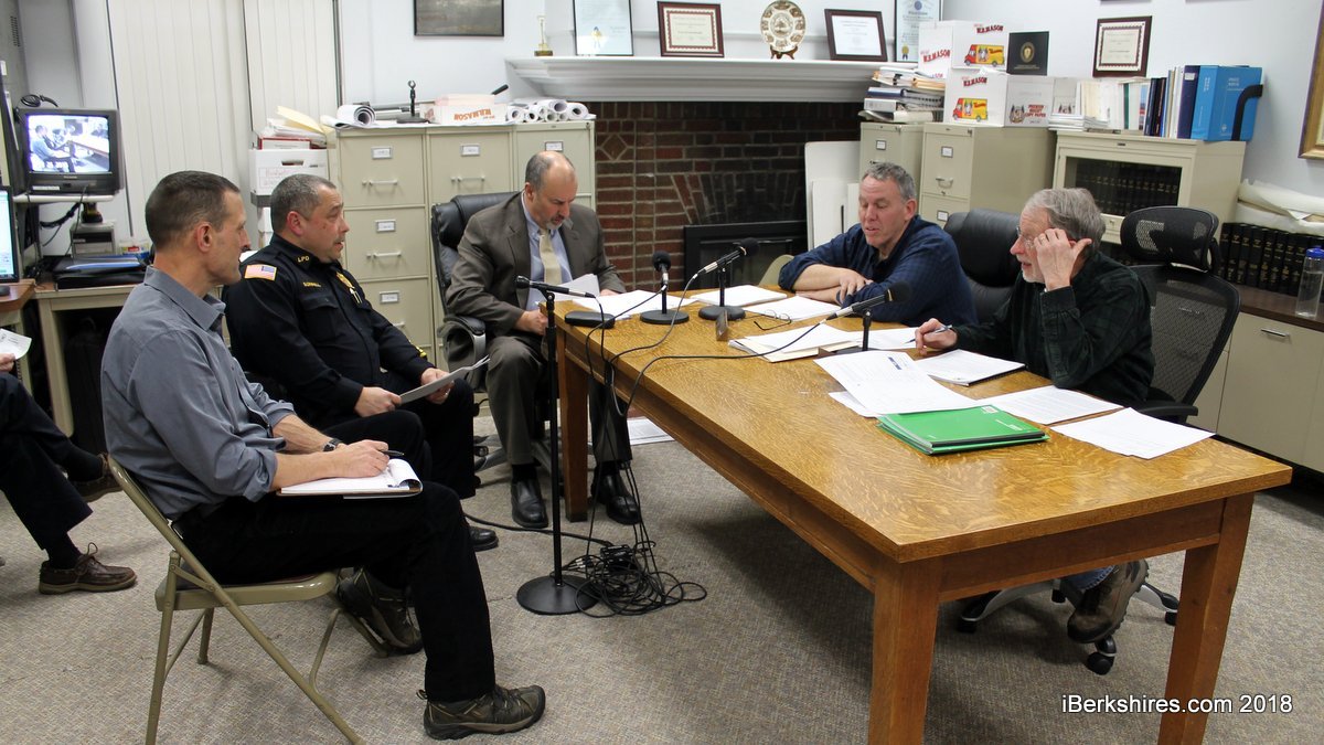 Police Chief Timothy Sorrell presented the letter the Selectmen on Monday. Next to him is Jeffrey Collingwood, an engineering who has been working with Ericson on some repairs to the building.