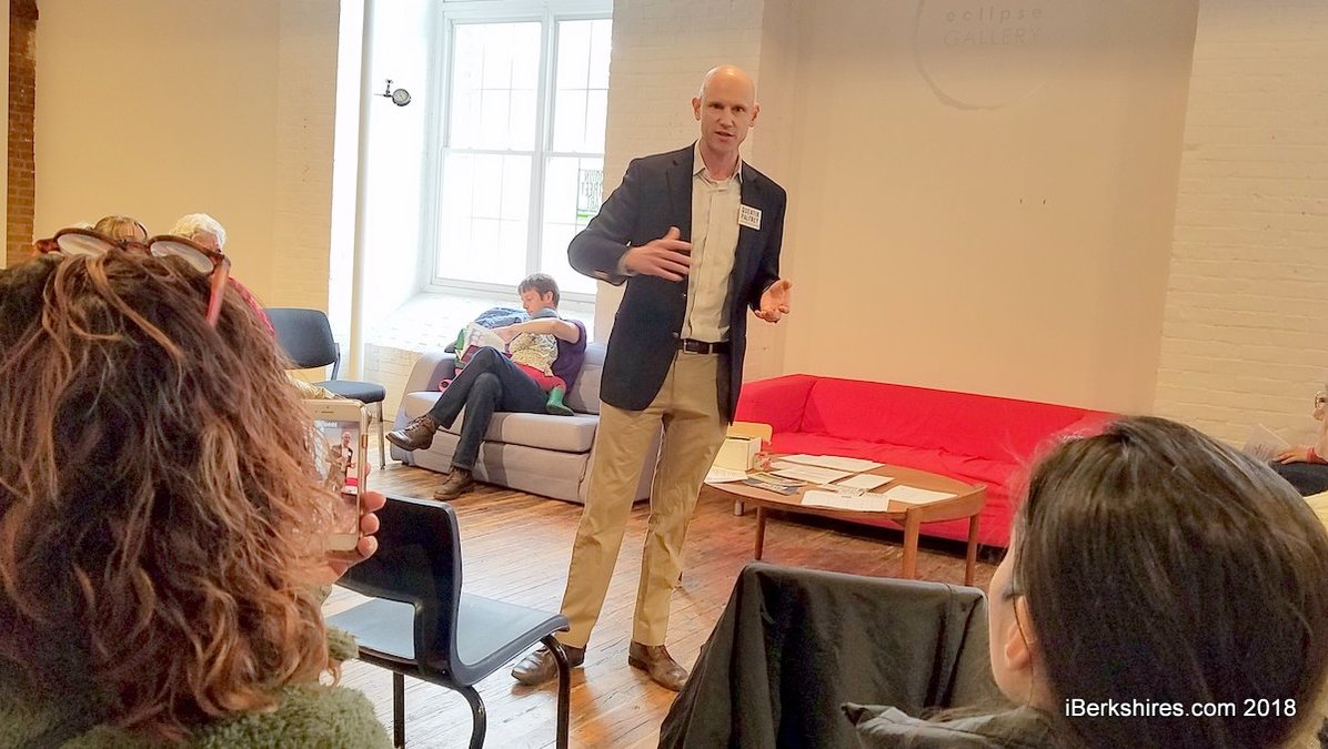 On Sunday, he spoke at Greylock Together's regular meeting, held in the gallery room at the Eclipse Mill. Some three dozen people attended the meeting of the local political group and Palfrey spoke and took questions for over an hour.