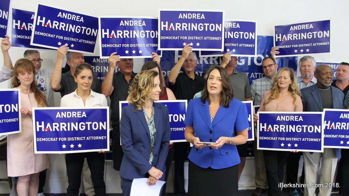 Harrington is one of three candidates in the race for the Democratic nomination. Both Paul Caccaviello, the incumbent, and Judith Knight are also seeking the post as Democrats. There is no other candidate on the November ballot so whoever wins the Sept. 4 primary will likely become the next district attorney.