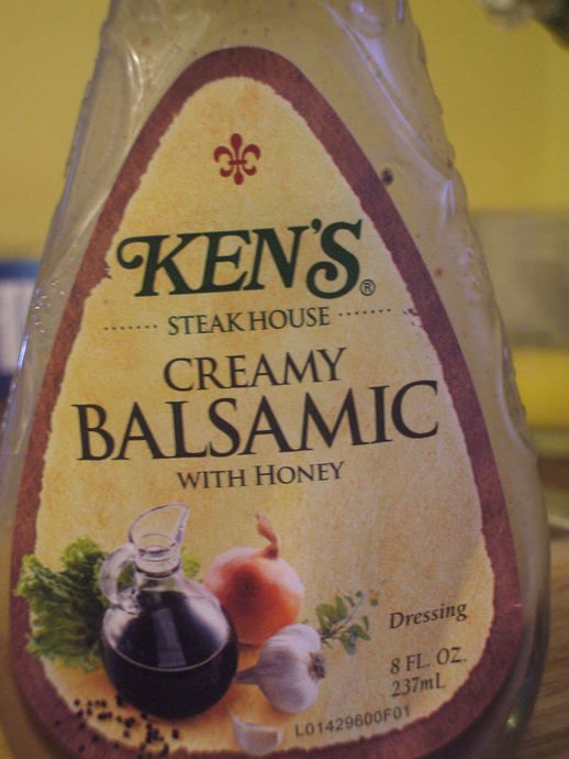 I love hosting dinner get-togethers, but the one thing that always throws me off is what type of dressings to get. Everyone is so specific about what they like to top their salads with, so I bought this dressing made by Ken's. It was a balsamic (which seems like a safe dressing to me). This was not your ordinary balsamic...it is a creamy balsamic with honey and garlic...and I should probably mention that it is TO DIE FOR!
