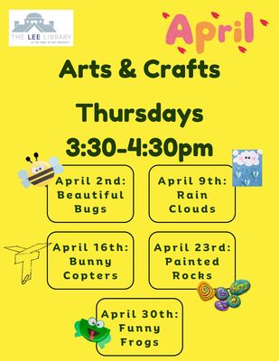 The Lee Library, 100 Main St., Lee offers weekly children’s programs. Join us Thursdays at 3:30pm for Arts & Crafts.