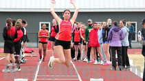 High school track teams competed on Friday at Mount Greylock's new eight-lane track and field complex. The opener was a "1,1,1" event, where each athlete could enter one running, one throwing and one jumping event.