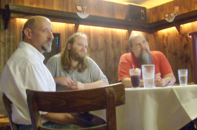 Eugene Michalenko of Adams, left, moderator Matthew Belanger and Paul W. Marino of North Adams discuss the breakup of Adams. |