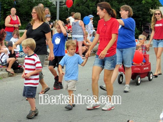 ![]() Little Red Schoolhouse parent Lori Kapiloff, center with son Ben, marches in last month's Fourth of July Parade with the preschool's contingent. |