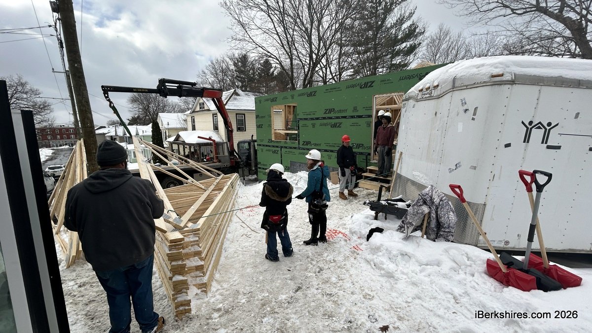 On Thursday, roof trusses were set on the home that Taconic High School students are partnering with Central Berkshire Habitat for Humanity to build. This is one of several homes the nonprofit housing organization has recently built, but a first for the young, skilled trades workers who were involved from the concrete pouring in October 2025.