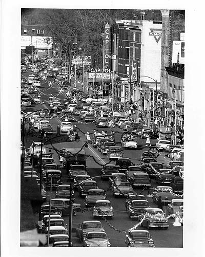 Comments...The Capitol theater marquee with the State theater marquee in the background. I always loved those "over the street" Christmas decorations.
