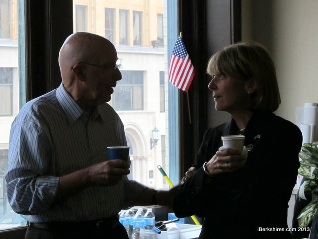 Besides being an incumbent, Downing also received support on Monday night from many county leaders and elected officials. Those in attendance included Sheriff Thomas Bowler, state Rep. William "Smitty" Pignatelli, state Rep. Paul Mark, state Rep. Gailanne Cariddi, state Rep. Tricia Farley-Bouvier, state Rep. Steve Kulik, District Attorney David Capeless, Adams Town Administrator Jonathan Butler, U.S. Rep. Richard Neal's representative Dan Johnson, Northwestern District Attorney David Sullivan, City Councilor Jonathan Lothrop, and Register of Probate Court Francis Marinaro among an array of business and cultural leaders.
