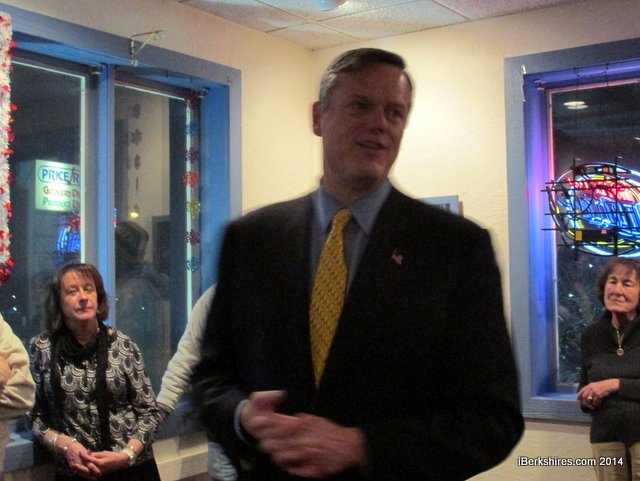 Baker met with the Berkshire County Republicans on Tuesday at Zucco's Family Restaurant.