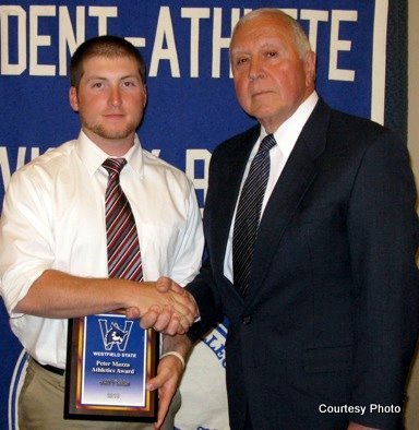 Jeff Fields of Pittsfield received the Peter Mazza Award at the Westfield State College varsity sports awards banquet. This award is given annually to an outstanding student-athlete who best represents the ideals of Mazza, former vice-president of student affairs at Westfield State.