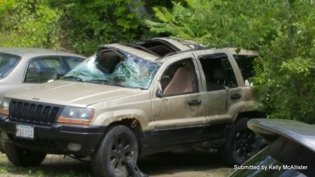 McAllister's Jeep was damaged after it rolled onto its side.