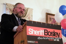 Southern Berkshire District Court Probation Chief Alfred Barbalunga opened the event by introducing Bosley's daughter, Stephanie, who then introduced her father. Barbalunga contemplated running for sheriff, but pulled out of the race at the end of April.