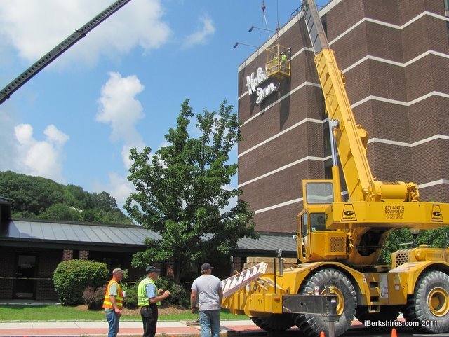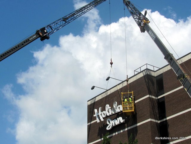 NORTH ADAMS, Mass. — The Holiday Inn signs on what's now Hotel North Adams were removed this morning by Callahan Sign Co. That doesn't mean the Holiday Inn won't be returning, the hotel's general manager Linette Searcy wrote us.