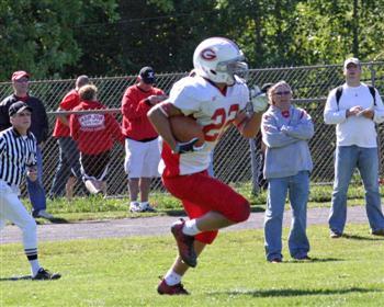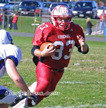 In this iBerkshires.com file photo from 2009, Mount Greylock running back Jason Pilot carries the ball against Hoosac Valley. The Hurricanes won last year, but the Mounties - led by Pilot's solid play on offense and defense - scored the big upset on Sept. 17 of this year. |