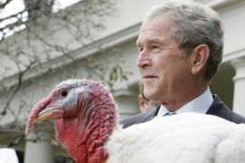 God, I love that quote. On Thanksgiving, I’m thankful for many things, and that quote is one of them. If I’m ever having a crappy day, I’ll just go to YouTube and find a bumbling George W. clip to put a smile on my face.