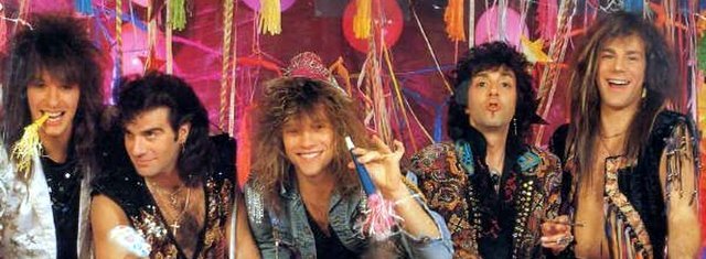 NBA fans will be partying like its 1987 if the Celtics and Lakers meet up again in the Finals. Check out the Bon Jovi member second from left, who seems to be looking into a mirror, thinking "Oh good, my cross isn't covering any of my chest hair. If I hold this exact pose, people will understand that I am both religious and sexy!"