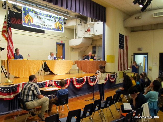 The debate took short breaks for students to present facts about Berkshire County they discovered during their civics research.