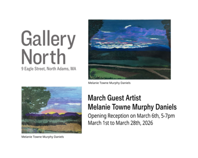 Melanie Towne Murphy Daniels will be showing her paintings at Gallery North, 9 Eagle Street. The exhibit will accompany new work by permanent gallery artists Marilyn Cavallari, Sean McCusker, Barbara Patton, Stephen Dankner, and Carol Shumans.