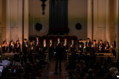 Join us for a beloved Hotchkiss tradition! The Hotchkiss Chorus presents the 66th annual Festival of Lessons & Carols on Sunday, December 7, at 7:00 p.m. in the Hotchkiss Chapel. Led by faculty member Jack Brown, with Joe Rose on the Chapel organ and Chaplain Jason Larson leading the service, the evening features classic a cappella carols, contemporary works by English and American composers, and a new setting of “It Came Upon a Midnight Clear” by student composer Jeff Gong. The audience is invited to sing along with favorite carols, and the night concludes with the candlelight singing of “Silent Night.” Free and open to all—come early to ensure a seat and enjoy this magical celebration of the season.