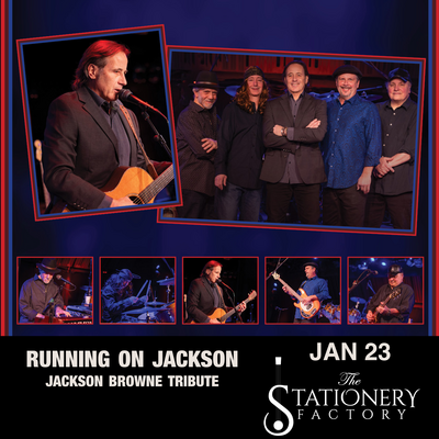 The Stationer Factory hosts Running On Jackson, a tribute to Jackson Browne, whose career has spanned more than 50 years. His legacy as a singer, songwriter and musician includes is iconic hits like "Running On Empty," "Doctor My Eyes," "Rock Me On The Water" and "Somebody's Baby," and countless others that have captivated audiences worldwide. Tickets and more information here.