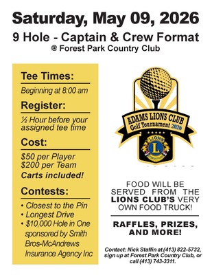 - Adams Lions Club Annual Golf Tournament