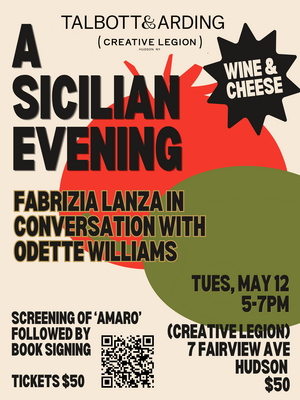Event space Creative Legion in Hudson, N.Y., in partnership with Talbott & Arding, hosts an intimate evening with Fabrizia Lanza — author, educator, and director of the Anna Tasca Lanza Cooking School in Sicily. Bringing together film, conversation, and a taste of Sicily, the evening is rooted in a shared appreciation for food as culture, memory, and ritual. The evening concludes with a reception featuring Sicilian cheeses and accompaniments curated by Talbott & Arding, along with a book signing. Seats are limited. Tickets are $50 for non-members, $40 for members. More information and tickets here.