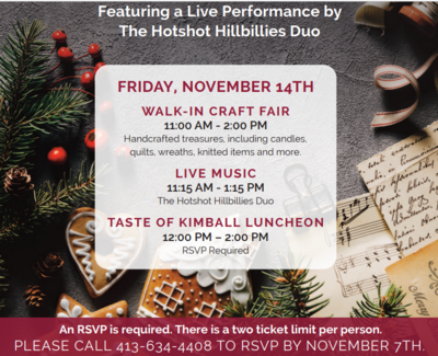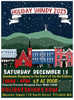 The Shindy will be held Saturday, December 13 from 10 AM to 4 PM. Admission is $3 for the general public. Ticketed preview shopping hour from 9AM-10AM. Children under the age of 12 are free. Located at Masonic Temple, 116 South Street Pittsfield MA. www.holidayshindy.com