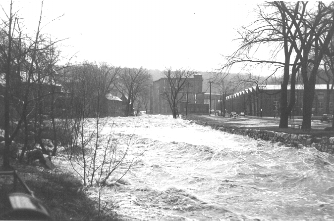 Rivers in Berkshire County have proved powerful - both in creating industry and destructive floods. At left is a photograph of the Hoosic River at Union Street during the 1948 flood. The image was provided courtesy George Betourney; see more of his flood photos here. Congress approved $20 million in funding in 1950 to build the flood control system in North Adams and Adams. They were completed in 1959. A past article noted in 2004 that "Ironically, since 1949, there have been no major flood-flow events to protect against."