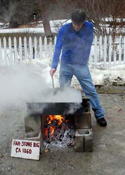 The sap is flowing at Hopkins Forest. Students and the public celebrated the season with syrup making, historical and educational displays of sugaring.topped off with fresh pancakes and syrup and 'Tire sur la neige,' or syrup on snow. [Photos by Paul Guil