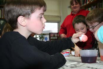 Children dip eggs for Easter at the Readsboro(Vt.) Community Library on Wednesday.