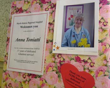 North Adams Regional Hospital staff and volunteers honored longtime volunteer Anna Toniatti on Friday afternoon. Toniatti was ending 37 years as a volunteer.