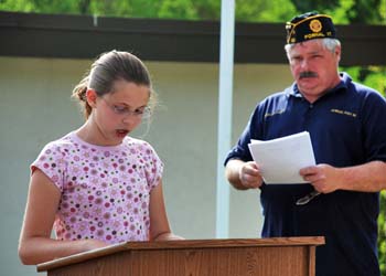 Pownal (Vt.) American Legion Post 90 honored veterans who have died in combat Monday night outside the Post home on Route 7. [Photos by Paul Guillotte]