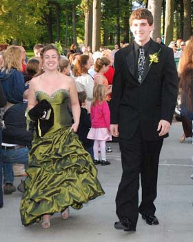 Young ladies in gowns and dapper young gentlemen run a gauntlet of flashing cameras to enter Cranwell Resort for the Lee High School prom on Friday night. [Photos by Paul Guillotte]