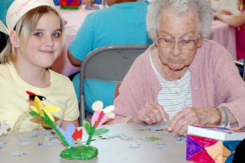 Brayton Students visited Sweet Brook Care Center residents for Easter bringing handmade puzzles and photo holders gifts.[Photos by Paul Guillotte]