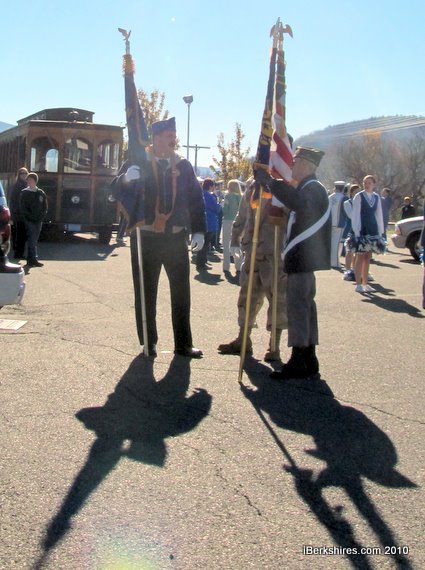 North Adams observed Veterans Day with a march from the American Legion to the Veterans Memorial, where Mayor Richard Alcombright and Lt. Col. Bruce Shepley spoke.