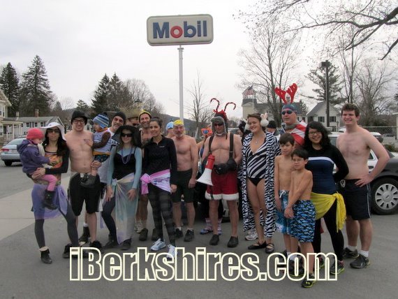 A hardy few stripped down to bathing suits and ran down Main Street for the