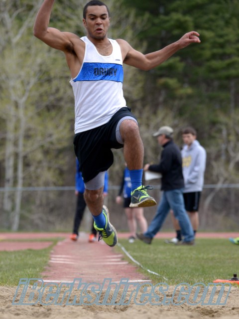 Evan Bossio and Amancho Adopo were double winners on Tuesday to lead the Pittsfield High School boys track and field team to a 119-22 win over Drury. [photos by M. Wrzesinski]