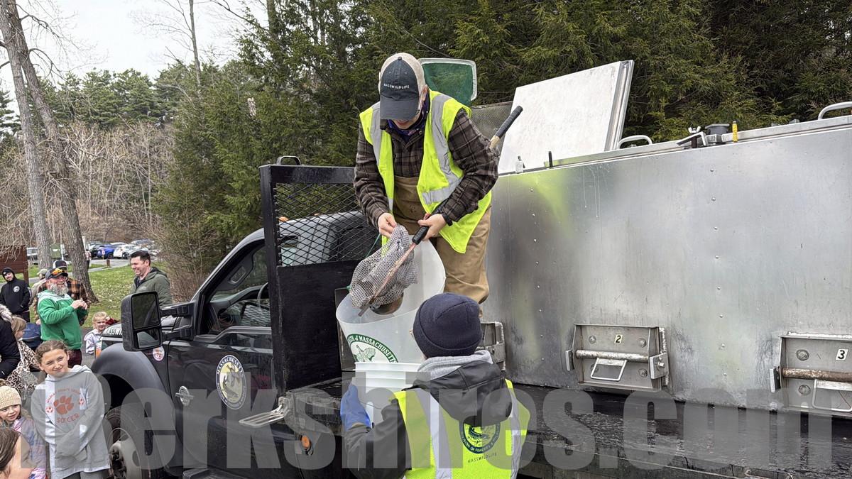 Hundreds turned out last week for Mass Wildlife's trout stocking event. Photos by Sabrina Damms